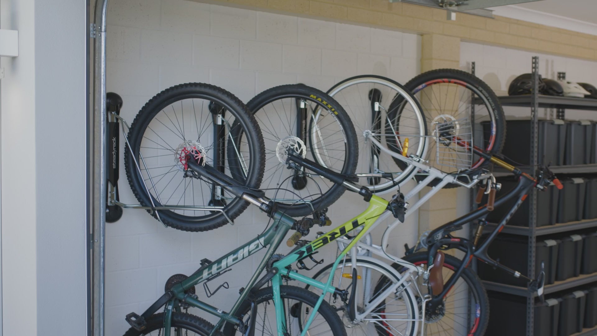 This rack mounts easily to almost any wall and swivels smoothly from side to side, letting you store multiple bikes closer together — even overlapping them to maximize your space. When not in use, the arms fold neatly away, keeping your area clean and clutter-free.